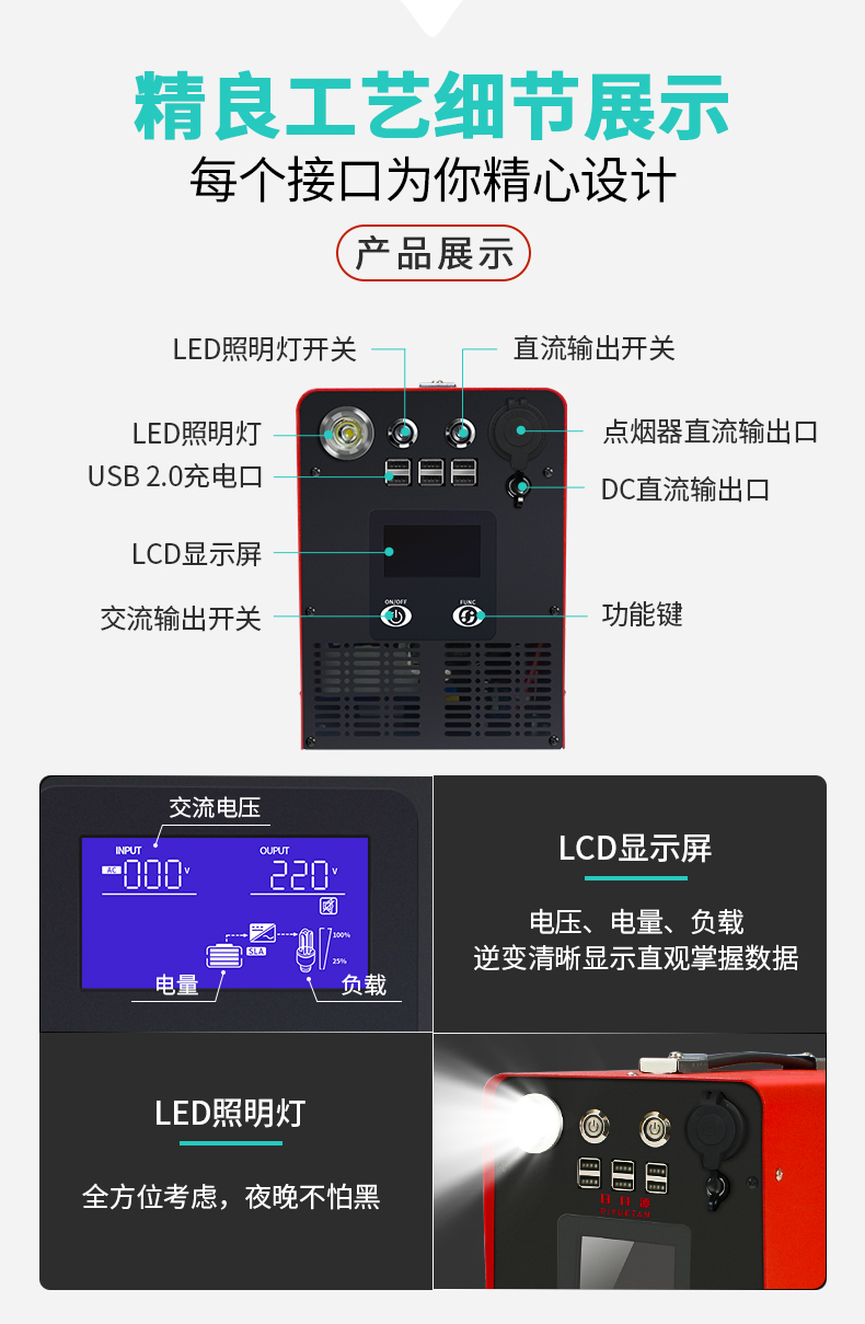大功率純正弦波輸出,支持邊充邊放,支持太陽能、汽車充電,帶有ups功能、屏幕數(shù)顯,LED手電。適用于電腦、無人機、房車、車載冰箱、戶外露營,夜市擺攤等