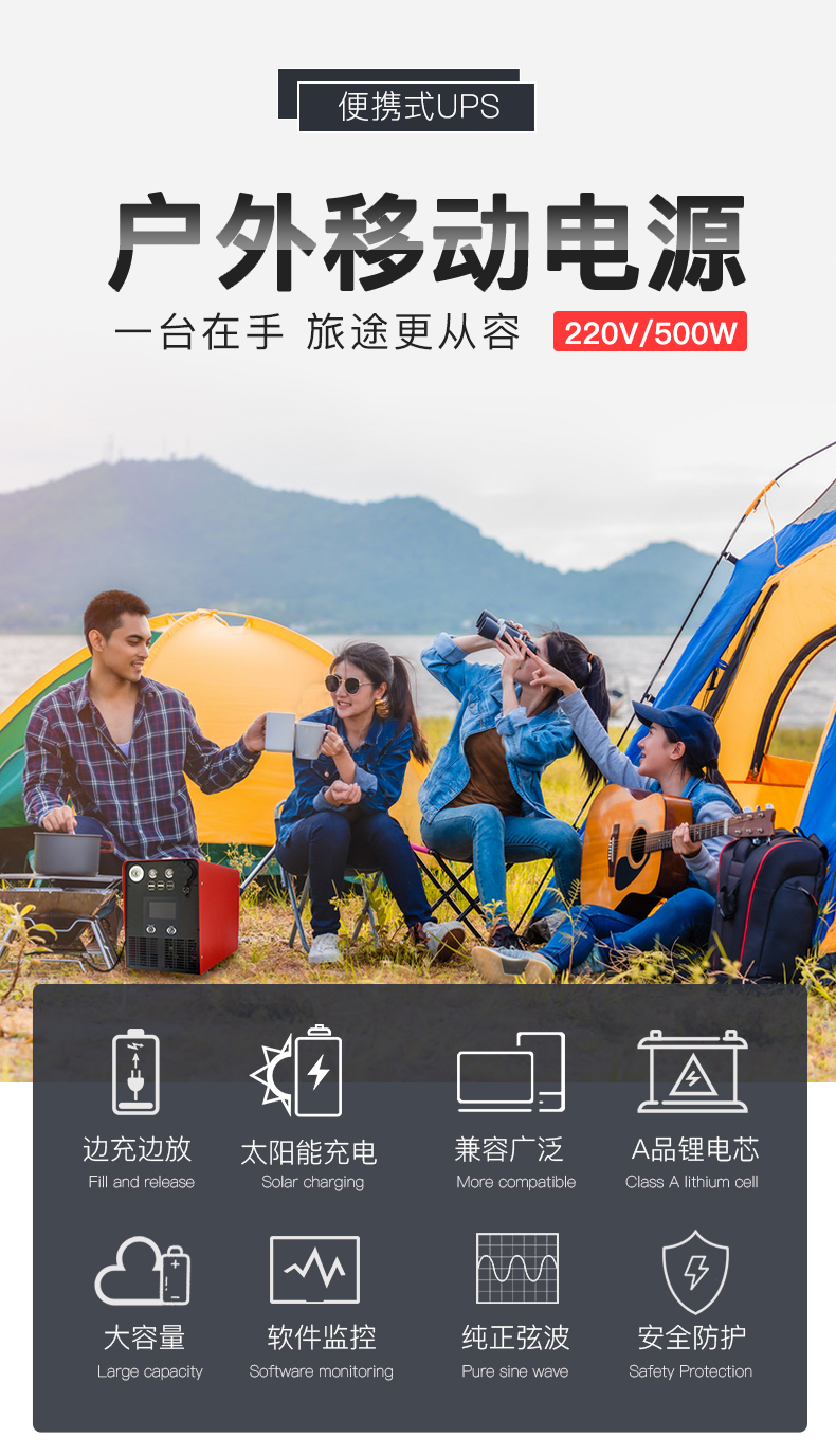 日月潭戶外電源220V筆記本電腦房車戶外擺攤露營停電備用應(yīng)急移動便攜500W大功率鋰電池