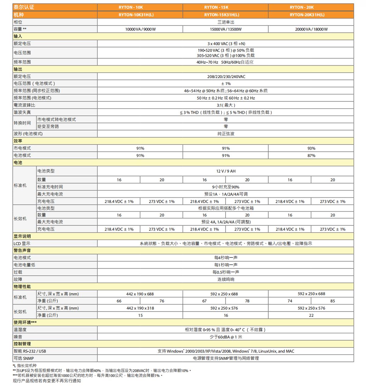 日月潭UPS電源RYTON-H系列產(chǎn)品特點: