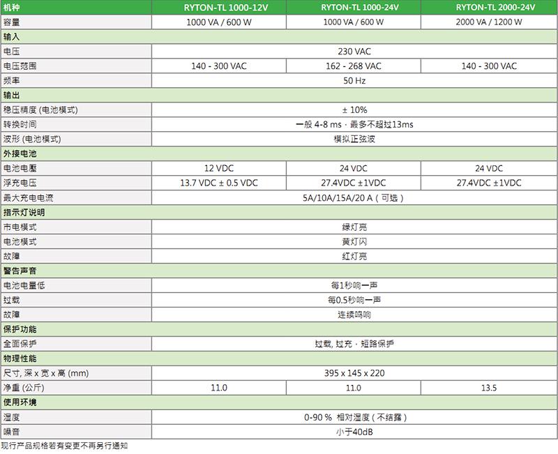 日月潭UPS不間斷電源RYTON-TL系列產(chǎn)品特點: