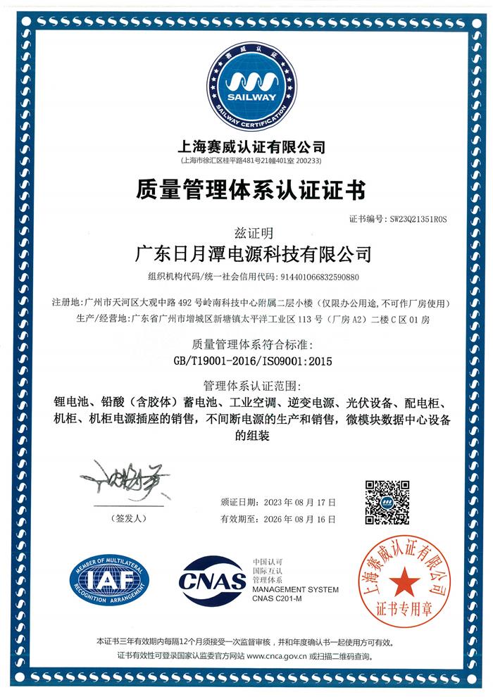 質量管理體系認證證書