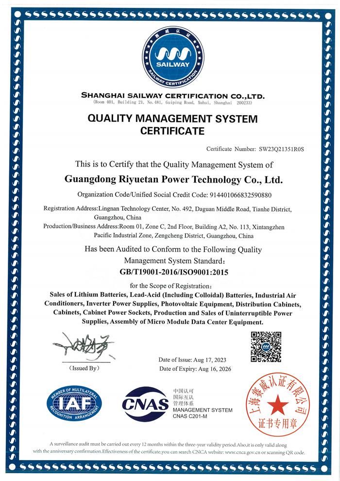 質(zhì)量管理體系認證證書